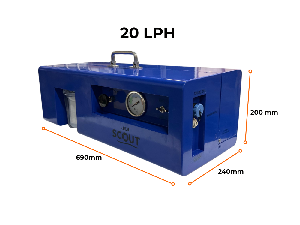 Scout is designed for simple, field-ready maintenance. After each use, a short freshwater flush helps preserve the membranes. Filters are easily replaceable, and the system can be fully serviced using standard tools (which we provide with each unit). LEDI offers complete service kits and step-by-step guides for owners.